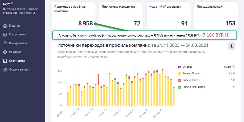 Такая же ситуация сейчас с картами. После seo оптимизации карточки своей компании, вы забудете про платную подписку Яндекса. А в разы увеличенный трафик будет идти постоянно и бесплатно не только с карт, но и с поиска